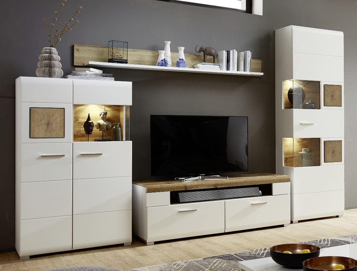 Wohnwand FUN PLUS Weiß / Eiche Altholz